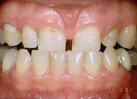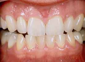 Sehr kleine und lückig stehende Zähne haben diese Frau schon lange gestört. Umfangreiche Füllungen störten zusätzlich den optischen Eindruck.