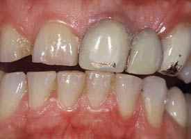 Ungleich lange Zähne, abgenützte Kronen und entzündetes Zahnfleisch machten eine Behandlung unumgänglich.